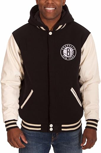 J H Design Men S Net953vrs6 Brooklyn Nets Hooded Reversible Varsity Jacket Black Cream 3xl At Amazon Men S Clothing Store